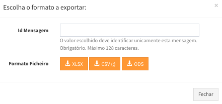 - Para exportar todos os registos da sua seleção ou pesquisa, clique em “Exportar Resultado” onde irá aparecer o seguinte formulário: