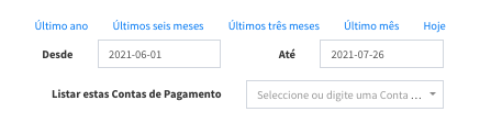 No Arquivo 5 anos tem ainda a possibilidade de pesquisar por intervalos de datas (por defeito o mês anterior) e Contas de Pagamentos.