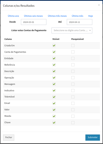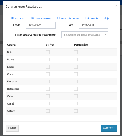 São disponibilizados filtros de pesquisa, pelo que deverá ter em atenção à data colocada ao pesquisar o pagamento que pretende devolver.